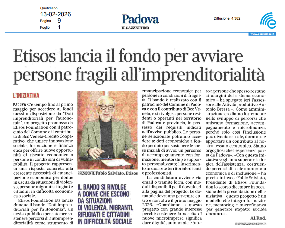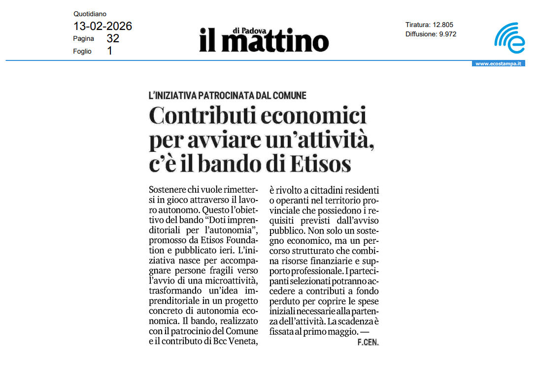Etisos lancia il fondo per avviare persone fragili all imprenditorialità