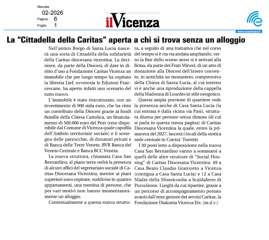 La Cittadella della Caritas aperta a chi si trova senza un alloggio